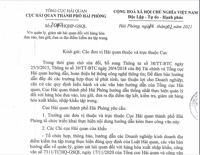 Link download: Cong van 2040_HQHP_GSQL Quan ly giam sat doi voi hang hoa dua vao, luu giu, dua ra dia diem kiem tra tap trung